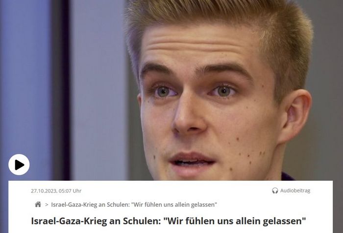 "Wir fühlen uns allein gelassen" so Heinrich Richter, Landesschülersprecher der Gymnasien in Bayern im BR-Interview. Der Landesschülerrat hatte eine Umfrage an Schülersprecherinnen und Schülersprecher in ganz Bayern gestartet. Er wollte wissen, inwiefern die aktuellen Ereignisse in Israel und dem Gazastreifen im Unterricht thematisiert worden sind. Die Antwort: Kaum bis gar nicht. Der Landesschülerrat fordert daher die Lehrpläne an Bayerns Schulen grundlegend zu überarbeiten.