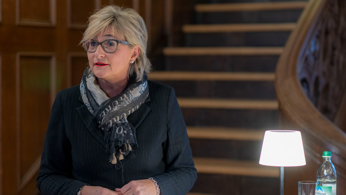 Am Abend des Kamingesprächs zeigt sich Simone Fleischmann bei den eröffnenden Worten kämpferisch. Veränderung statt Stillstand brauche es für bessere Bildung, ein gerechteres Bildungswesen und gesündere Schülerinnen und Schüler sowie Lehrkräfte, so die BLLV-Präsidentin. Wie das gelingen soll? Weniger Bürokratie, bessere finanzielle Ressourcen, mehr Digitalisierung, eine veränderte Schulstruktur und weniger Leistungsdruck: Das nennt die BLLV-Präsidentin als Kernforderungen, um Schule besser zu machen.