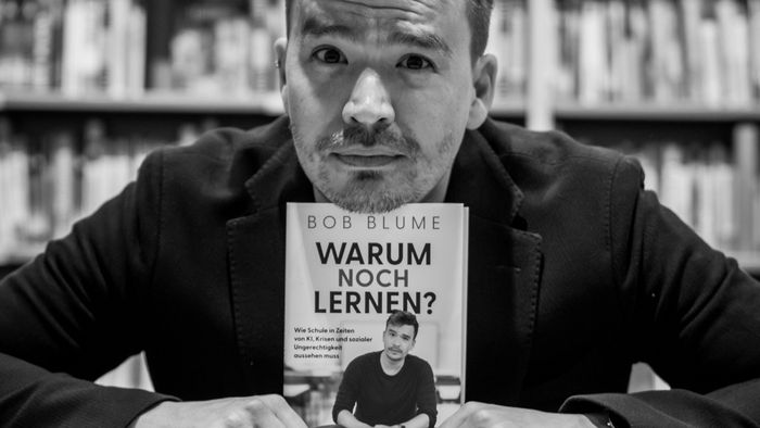 Im Gepäck von Bob Blume: Sein neues Buch „Warum noch Lernen? Wie Schule in Zeiten von KI, Krisen und sozialer Ungerechtigkeit aussehen muss“. Ein Titel, der natürlich gerade Lehrer*innen neugierig macht. Darin skizziert er, wie er das Schulsystem neu denkt: chancengerechter, sinnstiftender und wie das Lernen der Zukunft aussehen soll. Er hinterfragt vieles, was für Schule heute als gesetzt gilt und zeigt auf, in welche Richtung für ihn der Weg geht. Nach Bob Blume sind es die Schule und letztlich die Schulleitungen und Lehrkräfte, die den Weg der Veränderung aufzeigen müssen. Er rät: Im Kleinen anfangen, Bande untereinander schließen!