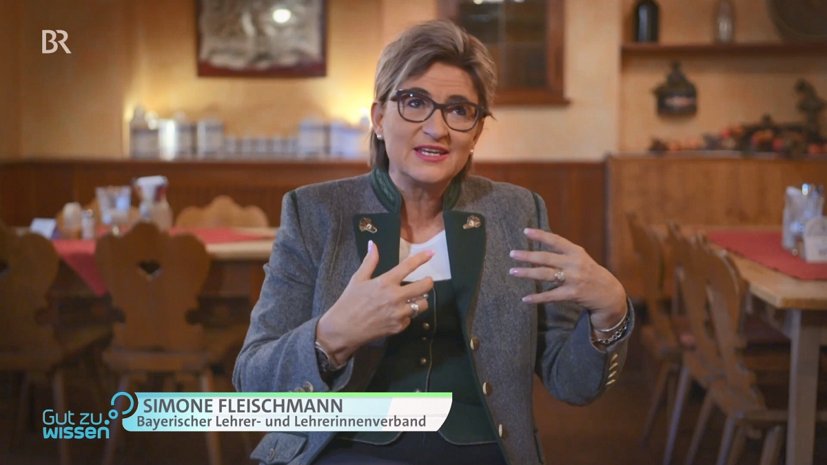 Das Bayerische Fernsehen analysiert im Magazin „Gut zu wissen“ ausführlich, anschaulich und differenziert die Chancen und Risiken von Künstlicher Intelligenz im Unterricht: „Wie wird KI die Schule verändern?“ lautet die Fragestellung. Als Expertin benennt BLLV-Präsidentin Simone Fleischmann das große Potenzial in Sachen Differenzierung: „Die größte Chance ist, dass wir kein Kind mehr verlieren würden, wenn wir passgenaue Tools hätten, die KI gestützt sind.“