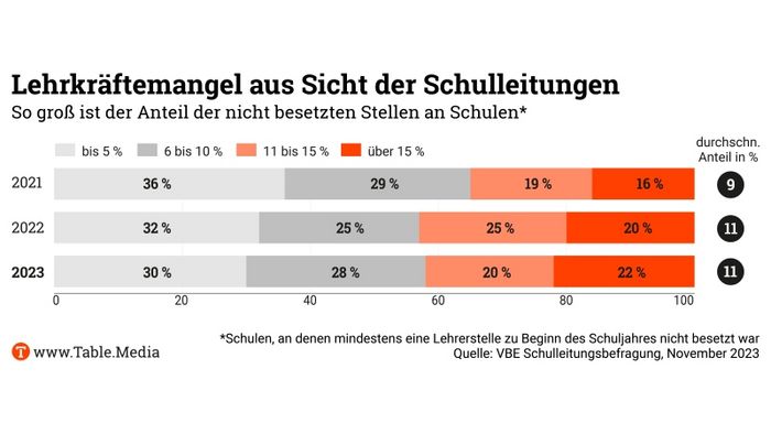 Insgesamt 1.310 Schulleitungen aus Deutschland wurden 2023 befragt, 251 davon aus Bayern. Heute wurden auf dem DSLK die Ergebnisse vorgestellt. Deutlich wurde: Der Mangel an Lehrkräften und Fachpersonal wirkt sich stark auf den Schulalltag und die Arbeit der Schulleitungen aus. Nicht zuletzt leiden die wichtigen Aufgaben Inklusion und Integration darunter, die von 28 Prozent der Schulleitungen als größte Probleme genannt wurden. Danach gefragt, wodurch sie sich persönlich am stärksten belastet fühlen, geben fast alle Befragten in Bayern die steigenden Verwaltungsarbeiten (98 Prozent) und ein stetig wachsendes Aufgabenspektrum (97 Prozent) an. Dass die Schule inzwischen dafür verantwortlich gemacht wird, alle aufkommenden gesellschaftlichen Probleme zu lösen, stellt für 93 Prozent der Befragten eine (sehr) stark Belastung dar. Es wird deutlich, dass immer mehr Verantwortung übernommen werden soll. Doch es fehlt an den dafür notwendigen Ressourcen, damit Lehrkräfte angemessen auf diese Herausforderungen reagieren können.