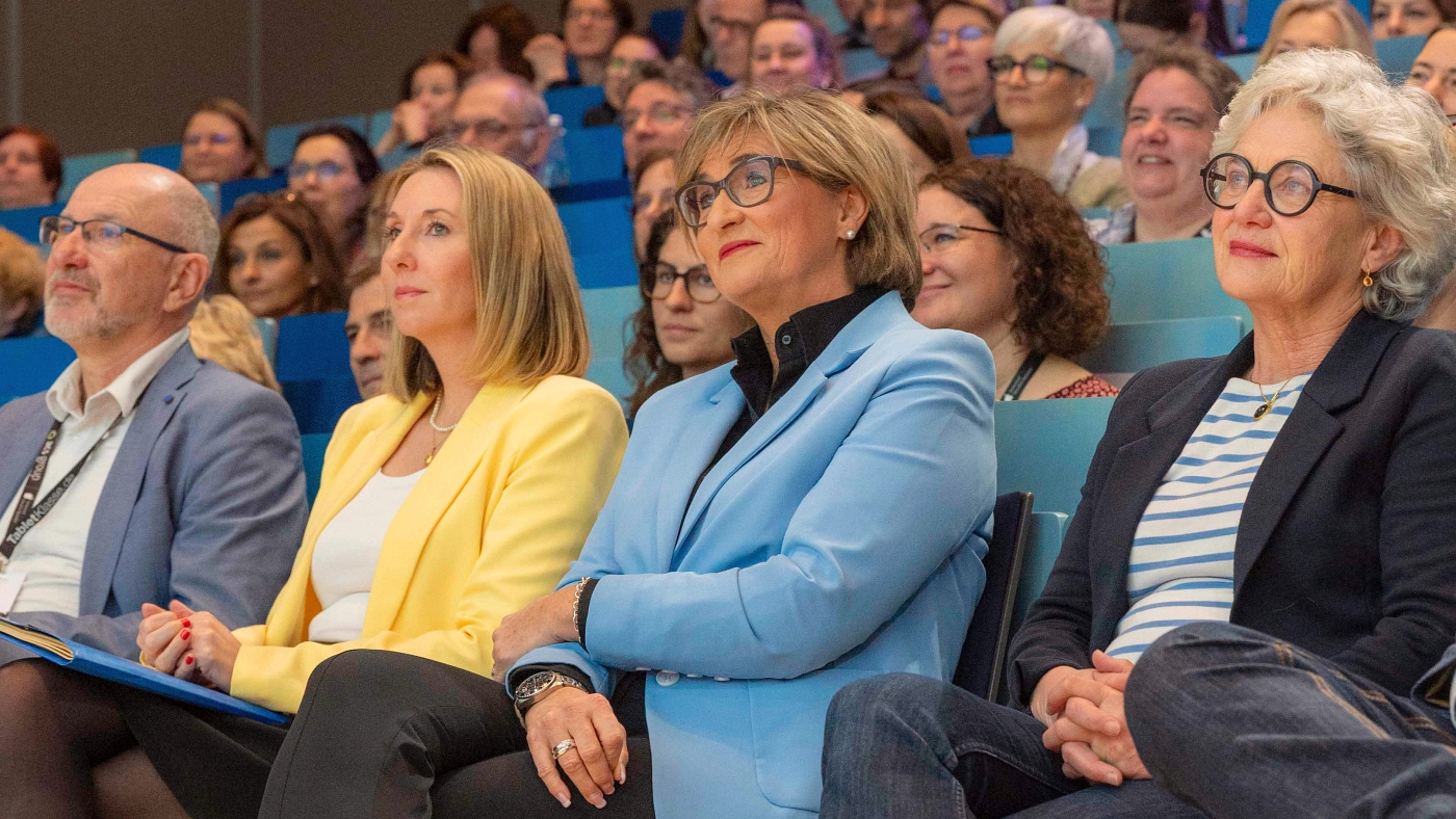 In der folgenden Diskussion zwischen der Kultusministerin und der BLLV-Präsidentin Simone Fleischmann kamen dann die Punkte zur Sprache, die für Diskussionsbedarf sorgen. „Sie haben es gehört, bei manchen Ihrer Punkte gab es da ein gewisses Raunen in den Reihen und die Punkte möchte ich natürlich auch gerne ansprechen“, so die BLLV-Präsidentin. Dabei würdigte sie sehr explizit den gemeinsamen offenen und konstruktiven Dialog. Sie betonte aber auch, dass dieser Dialog nicht funktioniert, wenn beispielsweise die Diskussion um die Zukunft des Religionsunterrichts von übergeordneter Stelle unterbunden wird.