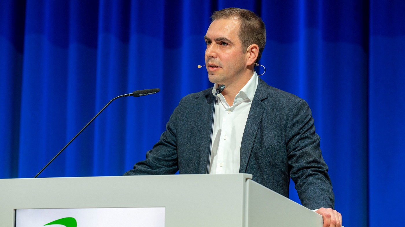 Auf dem Podium folgte Philipp Lahm – nicht nur bekannt als Ausnahme-Fußballer, sondern als einer der jüngsten Stifter Bayerns mit seiner eigenen Stiftung auch im Bildungsbereich aktiv. In seinen Projekten „Philipp Lahm Sommercamp“, „Philipp Lahm Schultour“ sowie „Soccer in Philippi“ und dem neu initiierten Projekt „Treffpunkt Fußball“ setzt er sich für Chancengerechtigkeit und Teilhabe ein. In seinem Vortrag betonte er die wichtige Rolle von Lehrkräften als Coaches und Leitbilder. Und er machte klar, wie Teamgeist und die gegenseitige Unterstützung den Unterschied in der Bildung und Entwicklung von Kindern und Jugendlichen ausmachen.