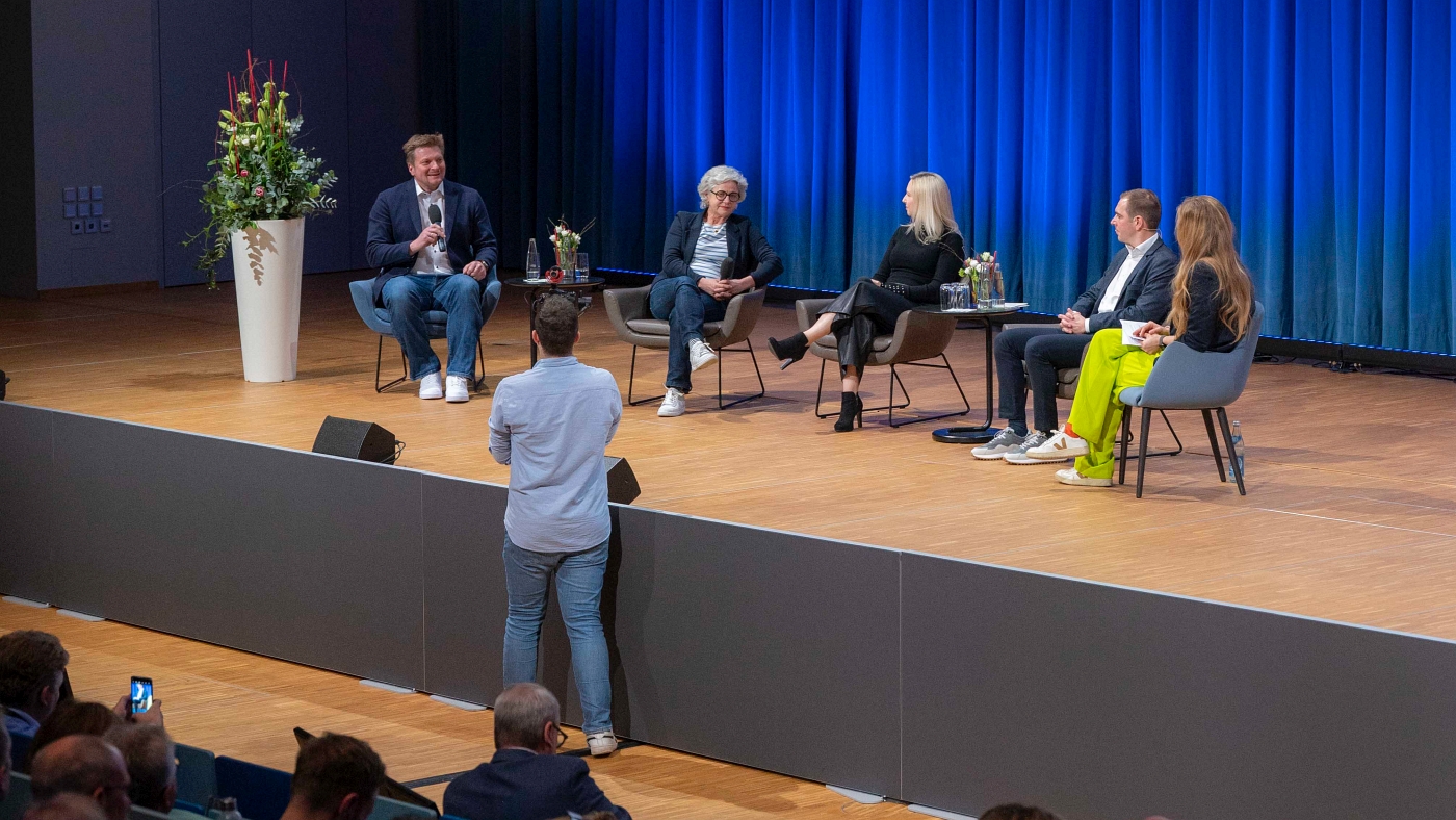 Aus der Keynote ging es für Ihn dann direkt auf das Podium mit Max Lachner, Schulleiter und Vorsitzender des BLLV Kreisverbands Coburg-Land, Schulleiterin Sabrina Neckov aus dem BLLV und Gabriele Triebel, ausgebildete Lehrerin, Vorsitzende des Bildungsausschusses und bildungspolitische Sprecherin von Bündnis 90/Die Grünen im Bayerischen Landtag. Thema des Podiums waren die konkreten Herausforderungen an den Schulen – und es zeigte sich schnell, dass diese teils enorm sind. Beispielsweise, wenn an einer Schule mit 95 Prozent Migrationsanteil sowohl eine sinnvolle Schulentwicklung betrieben werden soll, als auch eine individuelle Förderung. „Das, was ich mir wünsche, ist, dass ich meine Schüler so fördern und fordern kann, dass ich am Ende des Tages rausgehe und sage: Genau so habe ich mir das gewünscht. Und das kriege ich nur hin, wenn ich Leistungsgruppen bei mir bilden kann und dafür die Köpfe habe. Da brauche ich fünf Mal so viele Köpfe und dann kann ich diesen Kindern auch gerecht werden“, so Sabrina Neckov. Und auch Gabriele Triebel betonte, es brauche dringend mehr Personal, aber auch mehr Gestaltungsspielräume für die Schulen: „Weil ihr genau an der Schule wisst, was zu tun ist und was notwendig ist. […] Unsere Schulleitungen sind die Manager in der Schule. […] Da braucht es ganz viel Kompetenzen und natürlich auch ganz viel Zeit.“