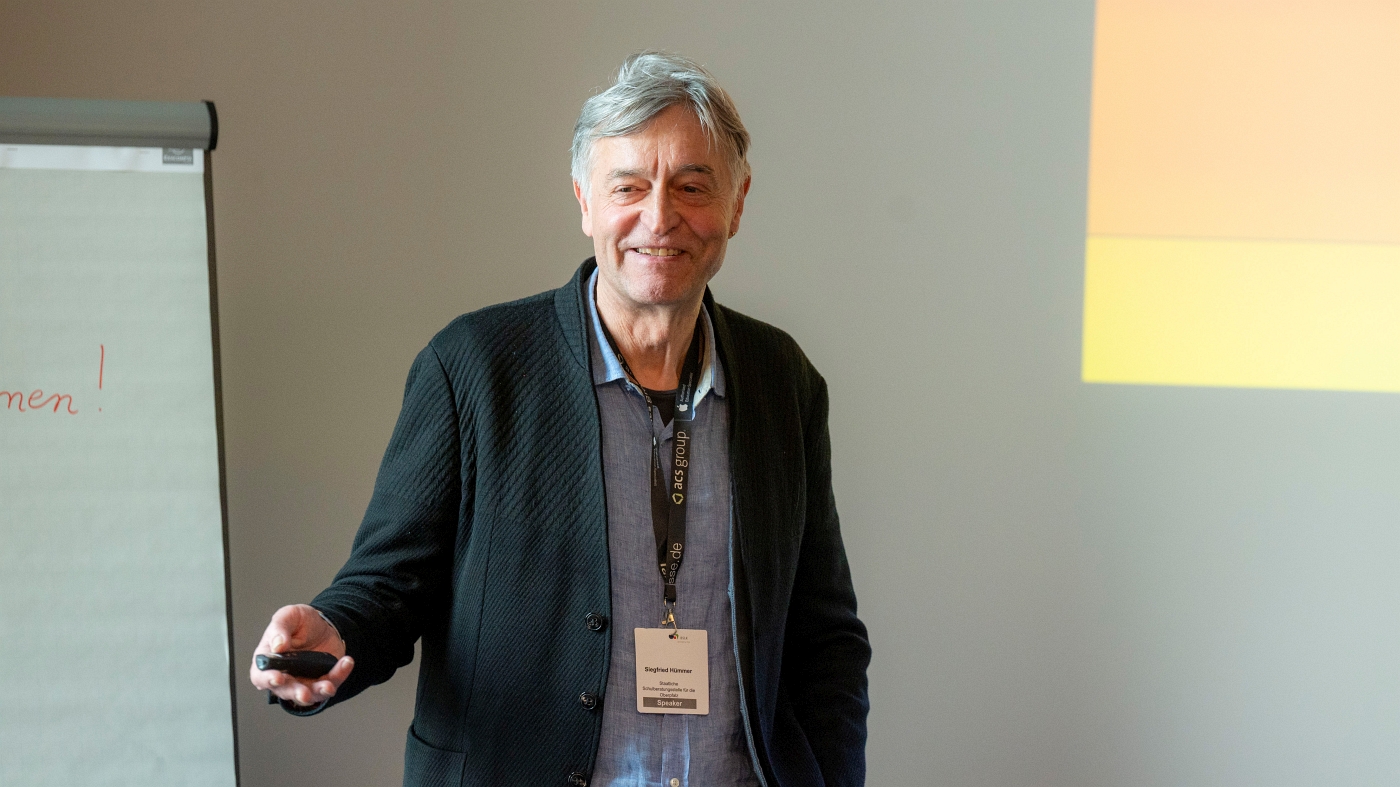 Prof. Dr. Stephan Gerhard Huber kennt die Situation an den Schulen. Das machte er gleich zu Beginn seiner Keynote klar: „Wir begleiten zurzeit 400 Schulen und das auch schon seit fast zehn Jahren - auch durch die Covid-Zeit. Und wir sehen, dass die Schulen in einer starken Anforderungs- oder Belastungssituation sind. Und manche von Ihnen erleben das natürlich deutlicher.“ Worum es ihm in seinem Vortrag geht, ist, wie Bildungsqualität und Schulentwicklung trotzdem gelingen können und welche intelligenten Ansätze es geben kann, um Schule auch in diesem Umfeld erfolgreich zu gestalten.