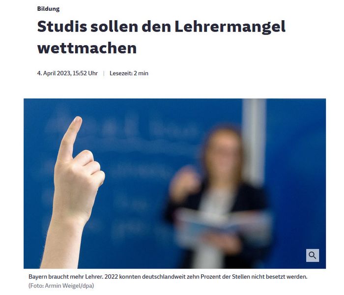 Der aktuelle Bericht in der Süddeutschen Zeitung vom 4. April legt nahe, dass sich die Befürchtungen bestätigen könnten: "Vom Hörsaal direkt vor die Klasse. So in etwa stellt sich der bayerische Ministerpräsident Markus Söder das Lehramtsstudium in Bayern künftig vor. Der CSU-Politiker will ein verpflichtendes Praxissemester für Lehramtsstudierende einführen und damit dem Lehrermangel in Bayern entgegenwirken..." so der Bericht.