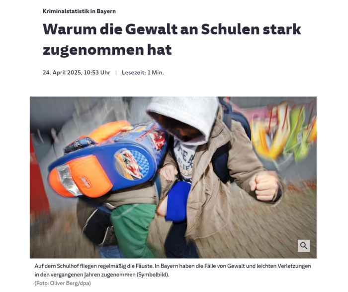 Laut der Polizeilichen Kriminalstatistik wurden im vergangenen Jahr 778 Fälle von Gewaltkriminalität dokumentiert und somit 12,8 Prozent mehr als im Jahr davor – 2023 waren es 690. Die Zahl der leichten vorsätzlichen Körperverletzungen hat ebenfalls zugenommen, sogar um 15,1 Prozent: Während 2023 noch 1.955 Fälle erfasst wurden, waren es 2024 bereits 2.252 Fälle. Im Vergleich zum Jahr 2015 haben sich die Zahlen gemäß den Angaben des LKA mehr als verdoppelt. In einem Beitrag vom 25. April 2025 greift die Süddeutsche Zeitung mögliche Ursachen für diese Entwicklung auf.