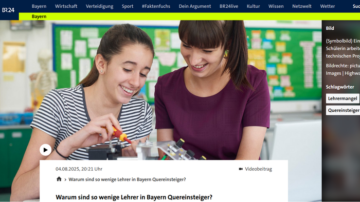 Einige Bundesländer setzen deswegen auf Quereinsteigerinnen und Quereinsteiger, um dem Mangel an grundständig ausgebildeten Lehrkräften Herr zu werden. Doch während beispielsweise in Brandenburg oder Sachsen-Anhalt inzwischen über 47 Prozent der Unterrichtenden über alternative Ausbildungswege an die Schulen gekommen sind, sind es in Bayern nur 2,2 Prozent, wie BR24 in einem ausführlichen Beitrag vom 4. August berichtet. Aber wie verändert das den Unterricht, die Bildung und die Schulen? Und warum sind in Bayern die Hürden für einen Quereinstieg so hoch?