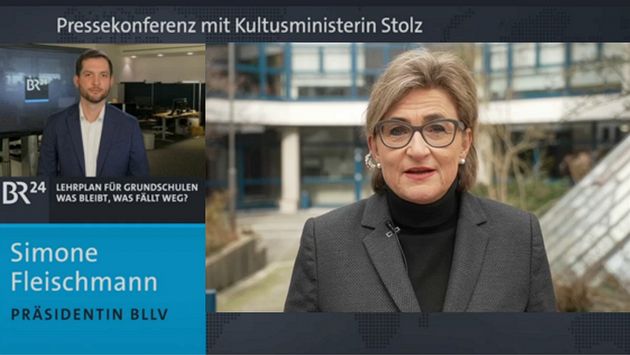Im Interview mit den BR24 TV-Nachrichten betont BLLV-Präsidentin Simone Fleischmann: „Ein Kind muss natürlich lesen können, es muss rechnen können, es muss zuhören können und es muss schreiben können. Aber es gibt noch andere Kompetenzen und der BLLV kämpft für ganzheitliche Bildung.“