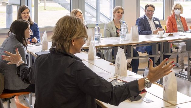 Im Zwiegespräch mit den beiden Fachgruppenleitern Eisenhut und Telent beweisen die Politiker profunde Sachkenntnis über den Fachlehrerberuf und artikulieren höchste Wertschätzung. „Schier unermüdlich leisten SIE [die Fachlehrkräfte] jeden Tag das Beste, um unsere Schüler:innen auf ihrem Weg zum passenden Beruf zu begleiten“, sagt Anna Schwamberger, Mitglied des Landtags (Bündnis 90/Die Grünen) in der politischen Diskussion.